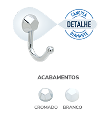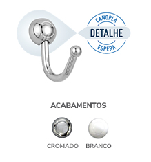 Acabamento em cromado e branco.